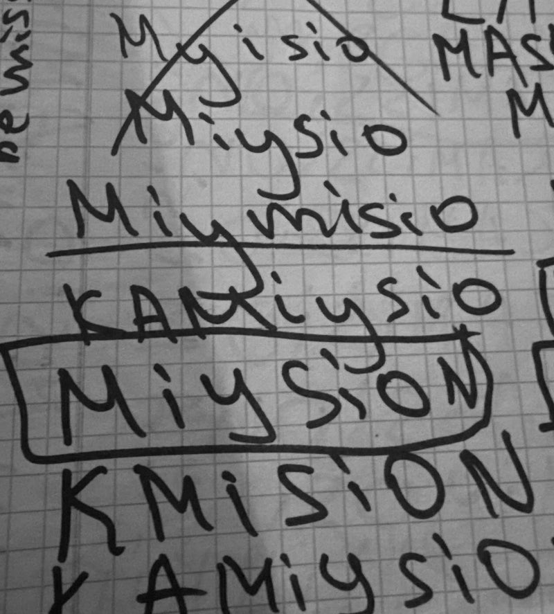I didn't fully understand what I was creating, but I followed the path. With only a pen and a notebook, I walked into the forest near my home. One day, from nowhere, the phrase "my mission" came to me. I wrote it down immediately, not knowing where it would lead. Days later, the word evolved into MIYSION.